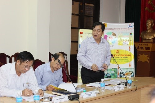 TS. Hà Xuân Quang - Phó Hiệu trưởng Nhà trường, Phó Trưởng Ban Quản lý Dự án báo cáo tóm tắt kết quả thực hiện và đánh giá các hoạt động đã thực hiện từ tháng 6/2015 đến tháng 8/2015 về tiến độ thực hiện, chất lượng của các đầu ra, các khóa đào tạo ngắn hạn dành cho giáo viên kỹ thuật dạy nghề, hoạt động chuyển giao kỹ thuật của Dự án tới các trường, doanh nghiệp trong xã hội... và đề xuất kế hoạch, nhiệm vụ của Dự án trong giai đoạn sắp tới.